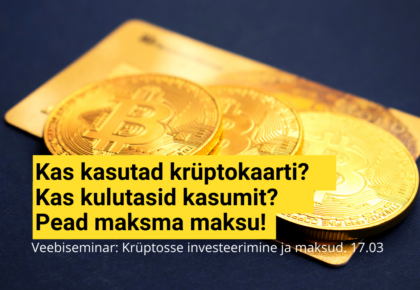 Kas teadsid, et krüptokaardiga makstes pead maksma ka tulumaksu? Mitmed platvormid pakuvad hetkel krüpto VISA kaarti, millega saab mugavalt maksta nagu tavapärasegi kaardiga. Selliste kaartide kasutamisel tuleb arvestada sellega, et kui tehingu hetkel konverteeritakse virtuaalne valuuta FIAT-iks, käsitletakse sellist tehingut...
